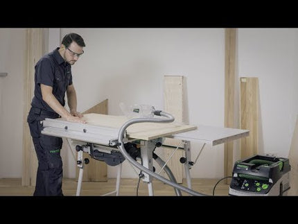 Die Tischzugsäge CS 70 EG PRECISIO aus dem Hause Festool ist ein wahrer Allrounder für Innenausbau, Möbelbau und Messebau. Die Schnitthöhe beträgt 70 mm und gewährleistet somit noch mehr Anwendungsvielfalt. Kappschnitte bis zu 320 mm Breite und Längsschnitte bis zu einer Schnitthöhe von 70 mm gelingen perfekt. Dank des schwenkbaren Sägeblattes sind Winkelschnitte von -2° bis +45° möglich. Durch die 2200 Watt erzielt die Tischkreissäge Schnittleistungen auf höchsten Niveau selbst bei härteren Materialien. Der Staubgekapselte Motor verhindert das die Maschine z.B. durch Aluminiumspäne zerstört wird. Das geringe Gewicht und die cleveren Funktionen machen die Säge zu einem Montagewunder. Die PRECISIO verfügt über einen Multifunktionsgriff mit Bedienelementen zum Ein- und Ausschalten, die Drehzahleinstellung, Kurzbetätigung, Schnell-Aus und den Zugmechanismus. Der Griff ist ergonomisch gestaltet, so dass längere Arbeiten benutzerfreundlich und gelenkschonend sind. Schnelles Umstellen von Längs- auf Querschnitten ist durch den Winkelanschlag kein Problem. Das CLEANTEC Verbindungssystem sorgt für einen sicheren Halt des Saugschlauches und ist mit allen Sandard Absaugmobilen von Festool kompatibel, so sorgt man für ein staubfreies Arbeiten. Die ausgefeilte MMC ( Multi-Material-Control) Electronic garantiert durch die regelbare und konstante Drehzahl sowie eine Temperaturüberwachung ein sicheres und materialgerechtes Arbeiten. Die Nut im Sägetisch bietet eine sichere Fixierung der Werkstücke, so ist ein Verrutschen nicht mehr möglich. Die FastFix Funktion ermöglicht einen schnellen und unkomplizierten Wechsel des Sägeblattes. Durch die Schnellbremse ist für sicheres Arbeiten beim Hobeln, Sägen und Fräsen gesorgt. Das Anbausystem bietet eine erhöhte Breite und Länge zum Bearbeiten großer Werkstücke. Dank der Transportrollen mit Abknickschutz ist die PRECISIO mobil und flexibel einsetzbar. In der integrierten Zubehörgarage sind Schutzhaube, Winkelrastanschlag und Schiebestock stets griffbereit.