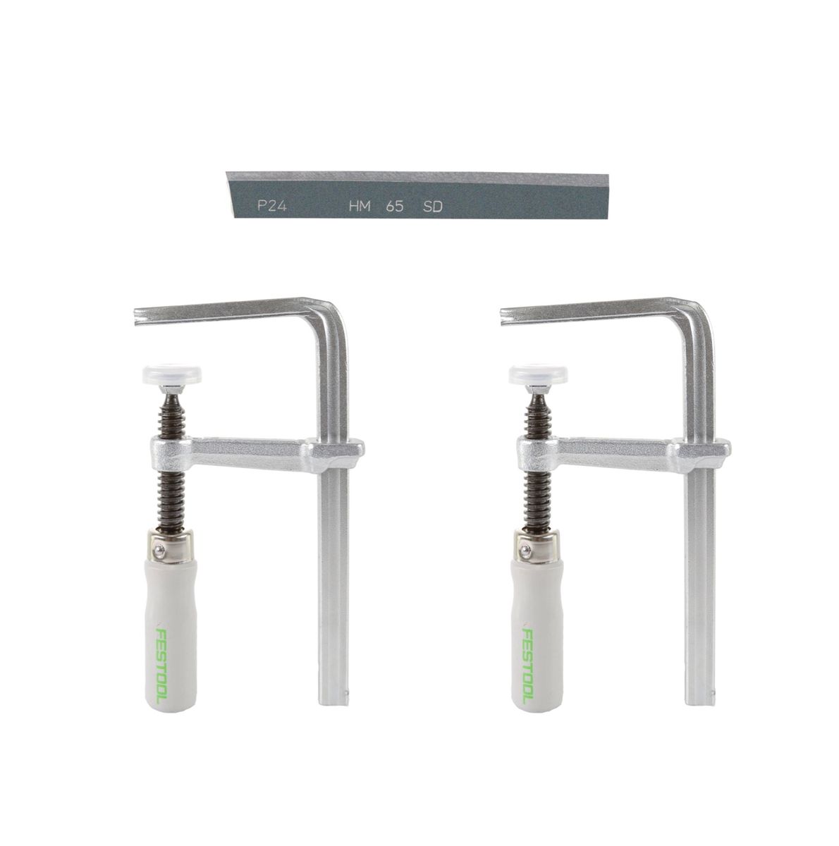 Festool EHL 65 EQ-Plus Einhandhobel 720 W 65 mm Hobelbreite ( 576601 ) + 2x FSZ 120 Schraubzwingen + HW 65 Spiralmesser + systainer