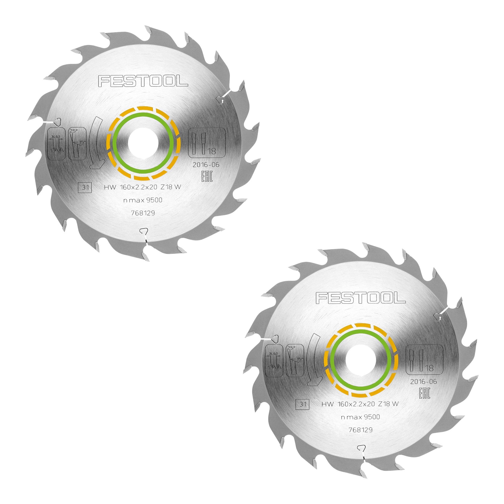 Festool HW 160x2,2x20 W18 piła tarczowa WOOD STANDARD 2 szt. ( 2x 768129 ) 160 x 2,2 x 20 mm 18 zębów do wszystkich materiałów drewnopochodnych, drewna litego, płyt gipsowo-kartonowych