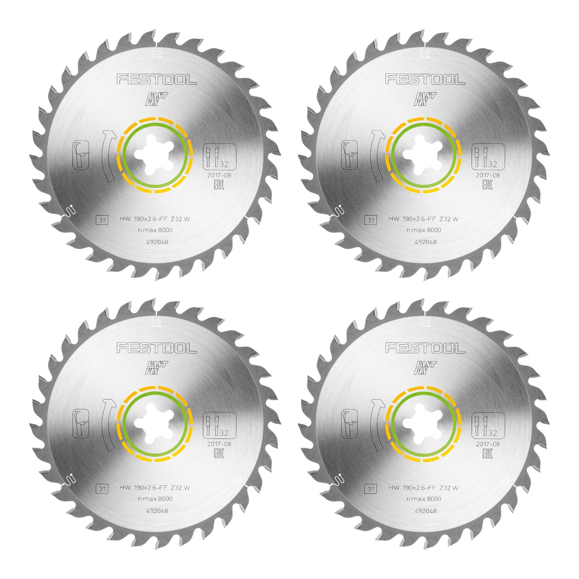 Festool HW 190x2,6 FF W32 piła tarczowa WOOD UNIVERSAL 4 szt. ( 4x 492048 ) 190 x 2,6 mm 32 zęby do wszystkich rodzajów drewna, materiałów drewnopochodnych, płyt budowlanych, płyt gipsowo-włóknowych, miękkich tworzyw sztucznych