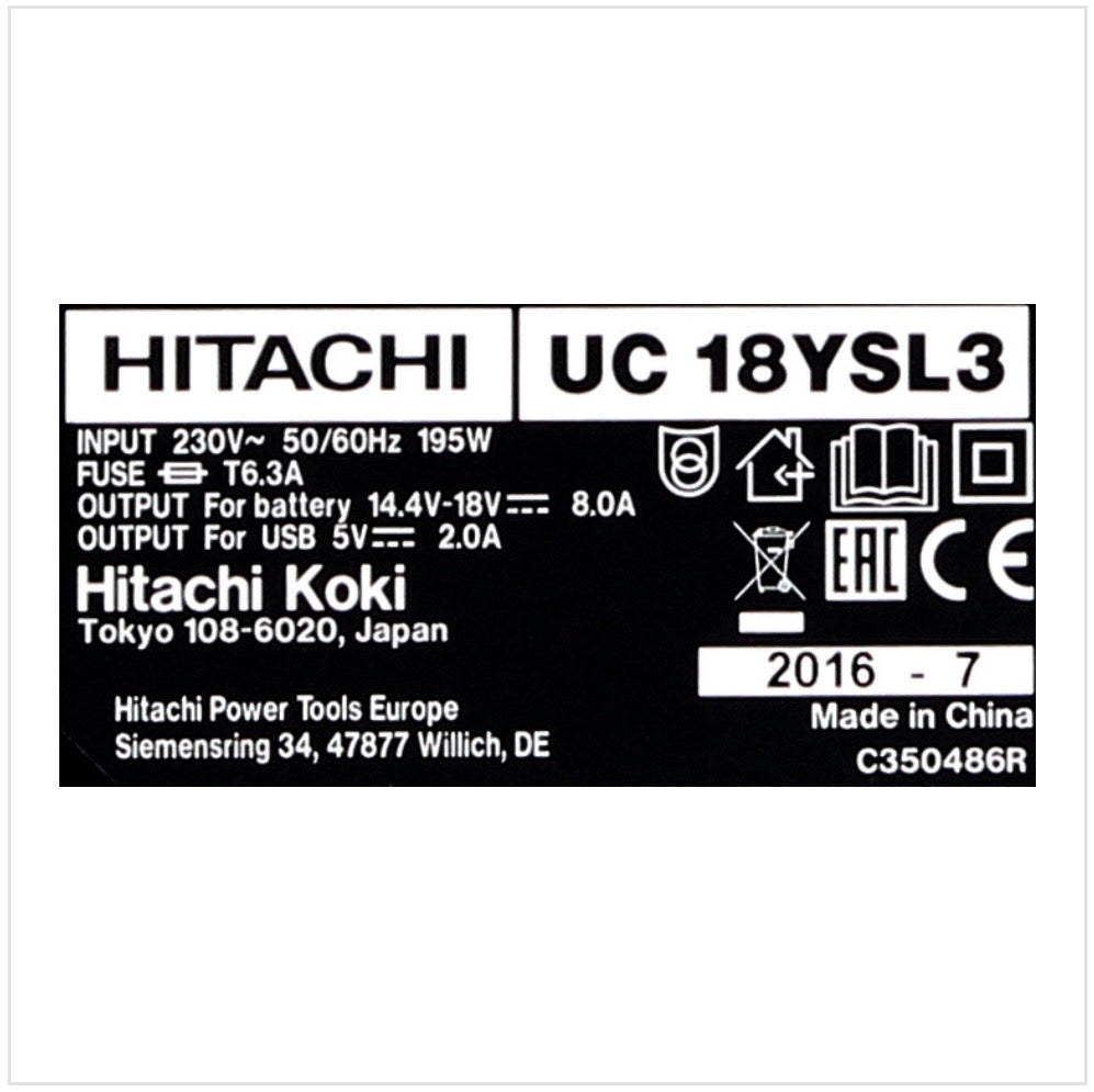 Hitachi UC 18YSL3 Akku Ladegerät 14,4 - 18 V für Hitachi Schiebe-Akkus mit USB-Anschluss