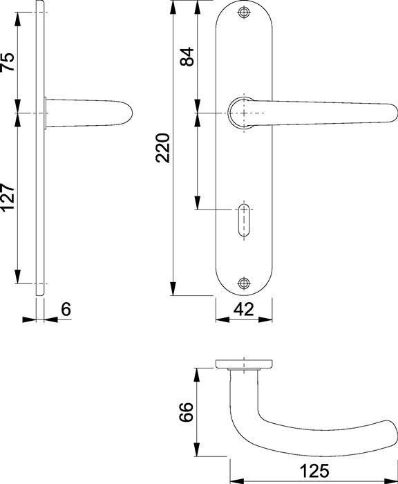 Zestaw długich płyt do drzwi wewnętrznych: testowany zgodnie z normą DIN EN 1906 (klasa użytkowania 3) - klamki z szybkozłączem (z pełnym trzpieniem) - osłony przykręcane w widoczny sposób - kwadrat 8 mm - rozstaw 72 mm - do drzwi o grubości 37 - 47 mm