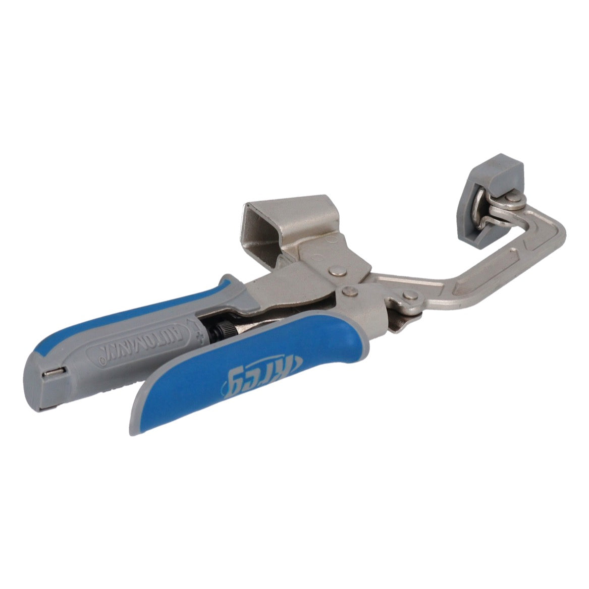 Ścisk warsztatowy Automaxx KBC3 firmy Kreg umożliwia mocowanie obrabianych przedmiotów do stołu ze stałą siłą zacisku. Zacisk automatycznie dostosowuje się do grubości obrabianego przedmiotu. Siła zacisku może być indywidualnie regulowana za pomocą pokrętła na rękojeści. Kreg to wiodący producent narzędzi ręcznych do produkcji mebli i obróbki drewna, który charakteryzuje się przede wszystkim wysoką jakością wykonania i zaawansowanymi systemami.