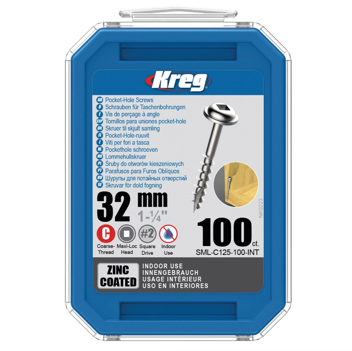 KREG Wkręt z łbem walcowym 32 mm 100 szt ( SML-C125-100 ) Napęd kwadratowy Gwint częściowy Gwint zgrubny Samogwintujący ocynkowany