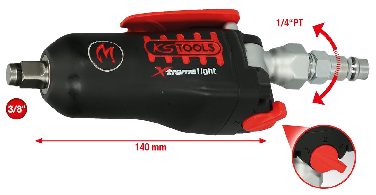 KS TOOLS 3/8" MONSTER Xtremelight Mini-Druckluft-Schlagschrauber mit Umschaltwippe, 108Nm ( 515.3830 )