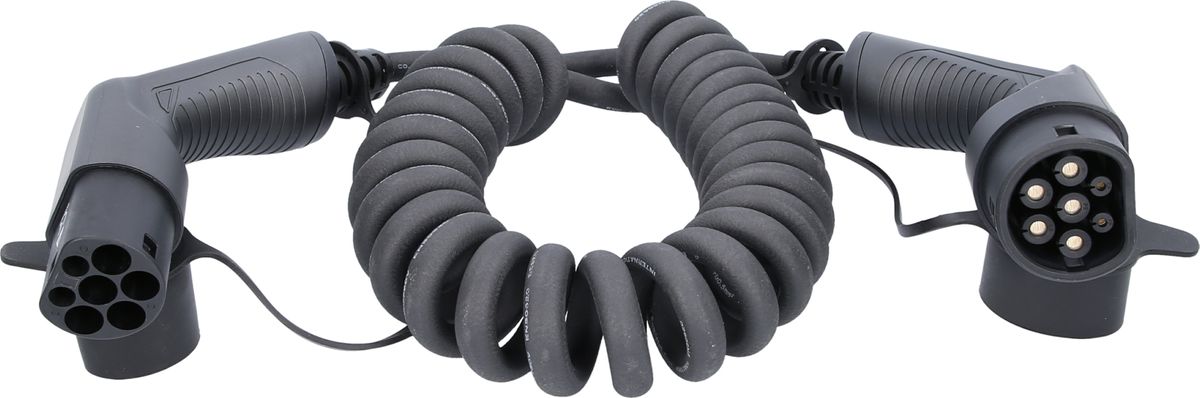 efuturo Spiralladekabel Typ 2 auf Typ 2 Stecker, 3 Phasen, bis zu 11 kW, 32 A, 400 V, Mode 3, 5 MeterMerkmale: