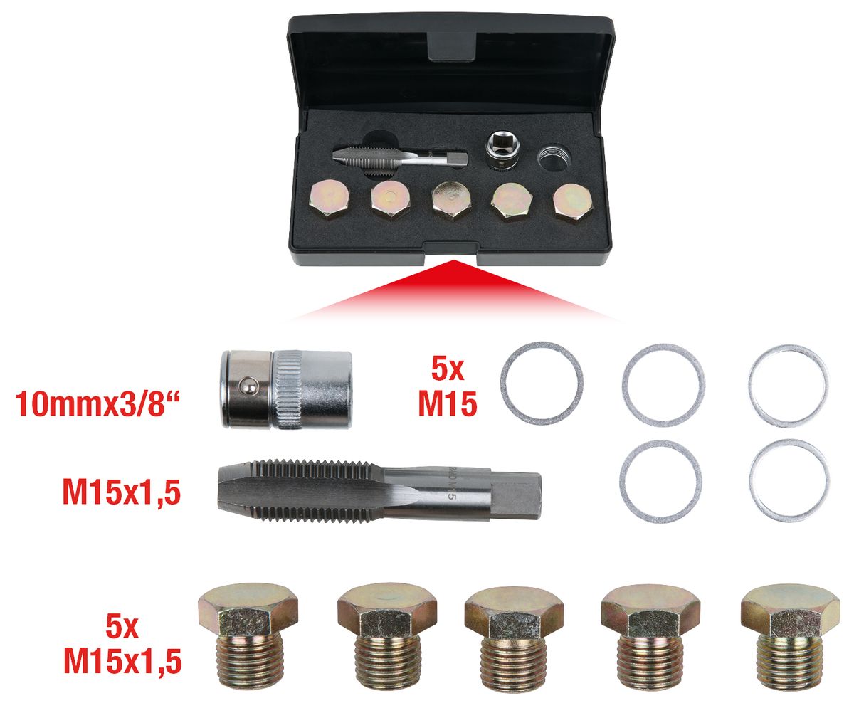 KS TOOLS Ölablassschrauben-Gewindereparatur-Satz, 12-tlg M15 x 1,5 ( 150.4925 )