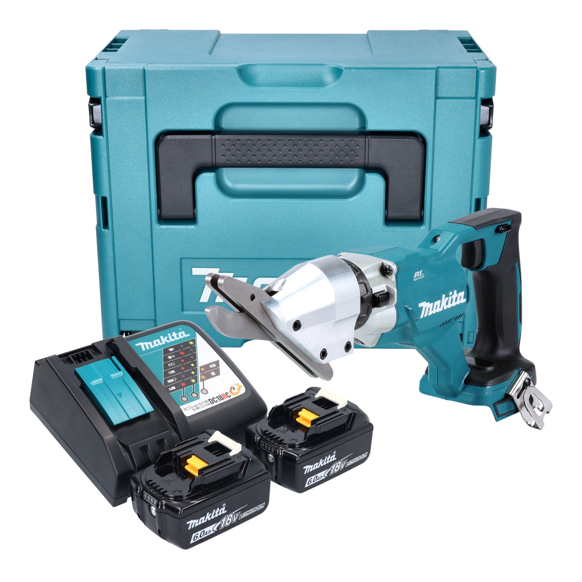 Makita DJS 800 RGJ Akku Faserzementschere 18 V Brushless + 2x Akku 6,0 Ah + Ladegerät + Makpac