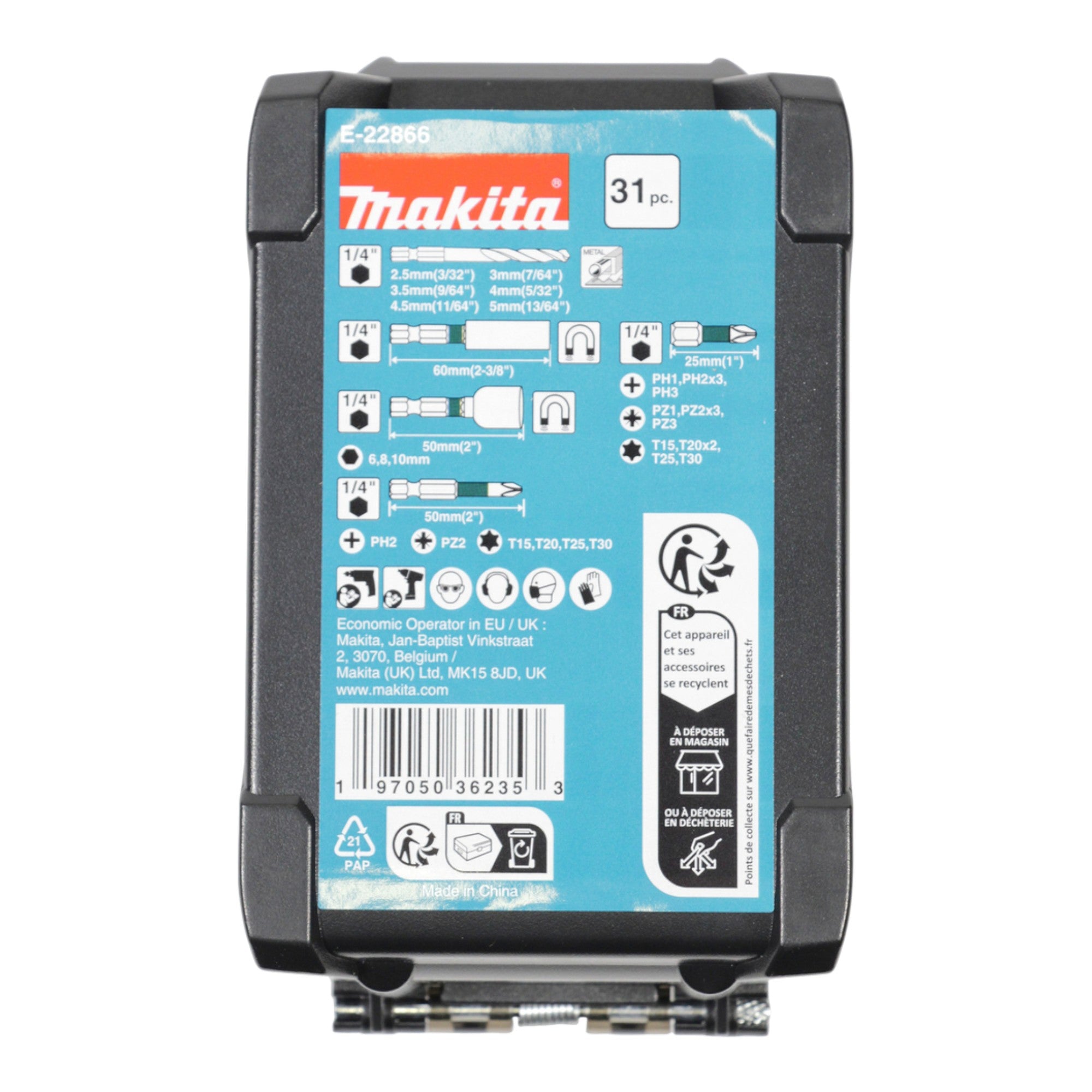 Makita E-22866 Zestaw bitów i wierteł 31 szt. stal Impact Black S2