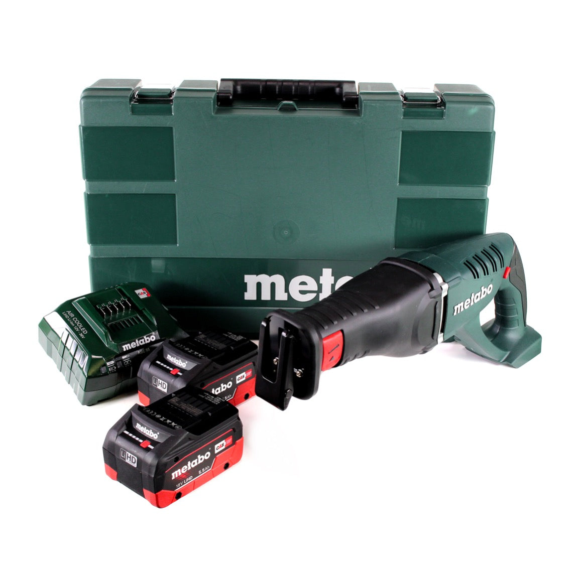 Das Elektrowerkzeug ist geeignet zum Sägen von Holz, Metallen, Kunststoffen oder ähnlichen Werkstoffen wie Hartgummi, Fiberglas usw. Die Akku Säbelsäge besitzt ein robustes Alluminiumdruckguss-Getriebegehäuse und ist für optimales Handling ummantelt. Das integrierte Metabo Quick System sorgt für einen schnellen und werkzeuglosen Wechsel des Sägeblatts. Das Sägeblatt ist um 180° drehbar und in Kombination mit einem leichten Akku zum bequemen Arbeiten über Kopf bestens geeignet. Die Säbelsäge beinhaltet einen verstellbaren Tiefenanschlag für optimale Ausnutzung des Sägeblattes und vielseitige Anwendungen wie z.B. Tauchschnitte. Die abgestimmten Palette des Metabo Sägeblatt-Programms ermöglicht ein breites Einsatzspektrum der Säge. Dank der neuen LiHD Technologie deckt Metabo als einziger Hersteller weltweit die gesamte Leistungsbandbreite, von 400 bis 3200 Watt, ab. Anwendungen, die bisher nur stärksten Netzmaschinen vorbehalten waren, sind nun, dank des 5,5 Ah Akku, kabellos möglich. Die Kombination aus neuartigen Hochleistungszellen und völlig neu entwickelten Komponenten des LiHD Akkupacks sorgt für ultimative Leistung und extrem lange Anwendung bei minimaler Temperaturentwicklung. Das Zusammenspiel aufeinander abgestimmter Technologien, wie z.B. ein intelligentes Batteriemanagement und die permanente elektronische Einzelzellenüberwachung sichern eine besonders lange Lebensdauer der Akkus. Die eingebaute Kapazitätsanzeige ermöglicht eine permanente Kontrolle des Füllzustands. Der optimale Schutz gegen innere Verschmutzung, vollständige Schutzlackierung der Elektronik sowie optimale Dichtung in der Deckelkonstruktion stellen eine lange Lagerfähigkeit bei sehr geringer Selbstentladung sicher. Die Außengummierung des Akkupacks sorgt für sicheren, rutschfesten Stand und dient auch als Stoßschutz. Die 100% Kompatibilität zu allen 18 V-Maschinen und Ladegeräten der CAS (Cordless Alliance System) Partner: Rothenberger, Edding, Fischer, Mafell, Collomix, Eibenstock, Eisenblättert, Haaga, Starmix, Steine, Rokamat, Birchmeier macht den Akku zu einem Akku für alles. Das Ladegerät ist zum Aufladen aller Li-Ion und LiHD Schiebesitz-Akkupacks (12V-36V) mit angepasstem Akku-Ladestrom von Metabo geeignet. Es handelt sich bei diesem Zubehör um ein Folgemodell des ASC 30-36 ( 685132000 ). Die patentierte AIR COOLED Akkukühlung sorgt beim Laden für deutlich reduzierte Ladezeiten. Ein intelligentes prozessorgesteuertes Lademanagement sichert das schonende Laden und maximale Anzahl der Ladezyklen. Der besondere Vorteil dieses Ladegeräts ist seine Eignung zum Aufladen aller Akkupacks der CAS (Cordless Alliance System) Partner: Rothenberger, Edding, Fischer, Mafell, Collomix, Eibenstock, Eisenblättert, Haaga, Starmix, Steine, Rokamat, Birchmeier. Ein Ladegerät für alles.