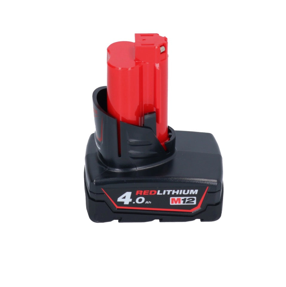 - 1x wsuwany akumulator litowo-jonowy Milwaukee M12 B4 12 V 4,0 Ah / 4000 mAh