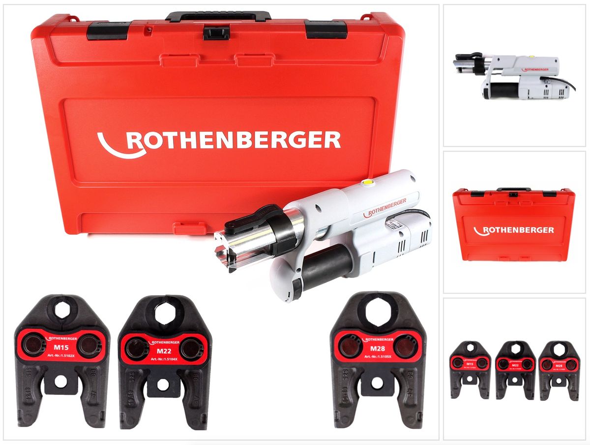 Ta zaciskarka firmy Rothenberger zapewnia stały nacisk dzięki technologii Constant Force. Jest elektrohydrauliczna z siłą tłoka 32-34 kN do pracy sieciowej do zależnego od systemu zaciskania złączek o średnicy od 12 do 110 mm. Obracany o 270° standardowy uchwyt szczęk zaciskowych jest kompatybilny z zaciskarkami wielu innych producentów. Urządzenie waży ok. 4,5 kg, dzięki czemu jest lekkie i łatwe w obsłudze oraz odpowiednie do seryjnego zaciskania połączeń na miejscu. Po naciśnięciu i przytrzymaniu włącznika rozpoczyna się proces zaciskania sterowany siłą (wymuszona sekwencja sterowana siłą, analogiczna do specyfikacji wiodących producentów systemów). System dwóch przełączników (start / powrót ręczny) zapewnia pracę bez zmęczenia. Urządzenie jest również ergonomiczne dzięki gumowanemu uchwytowi i zrównoważonemu rozkładowi masy. Promień roboczy jest również bardzo szeroki dzięki długości kabla zasilającego wynoszącej 5 metrów.