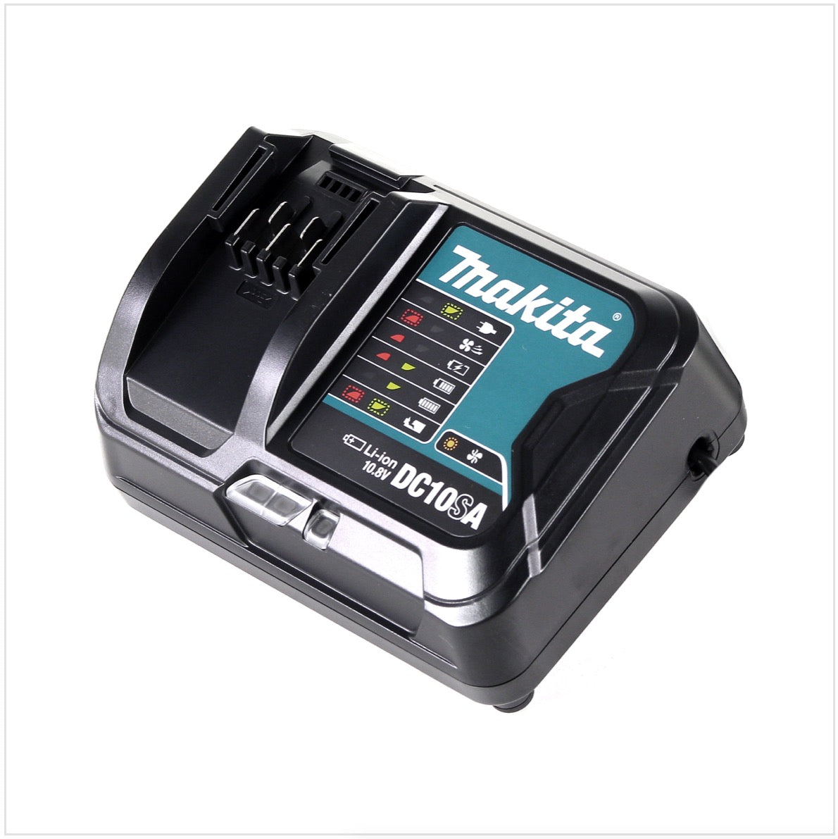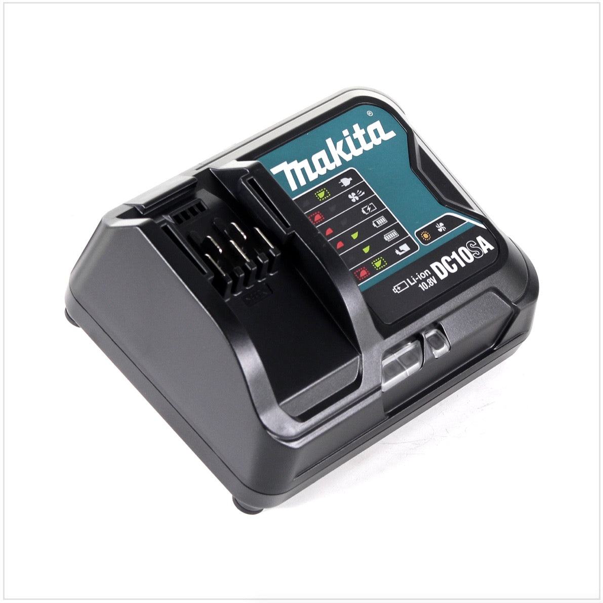Makita DC 10 SA to szybka ładowarka do akumulatorów litowo-jonowych 10,8 V firmy Makita. Ładowarka zawsze informuje o stanie naładowania akumulatorów, a zintegrowany system chłodzenia zapewnia, że akumulatory są zawsze utrzymywane w optymalnej temperaturze. Szybka ładowarka niezwykle szybko ładuje generację akumulatorów 10,8 V firmy Makita, co skutkuje bardzo krótkimi przerwami w ładowaniu lub płynnym procesem pracy, gdy tylko dostępne są na przykład dwa akumulatory.