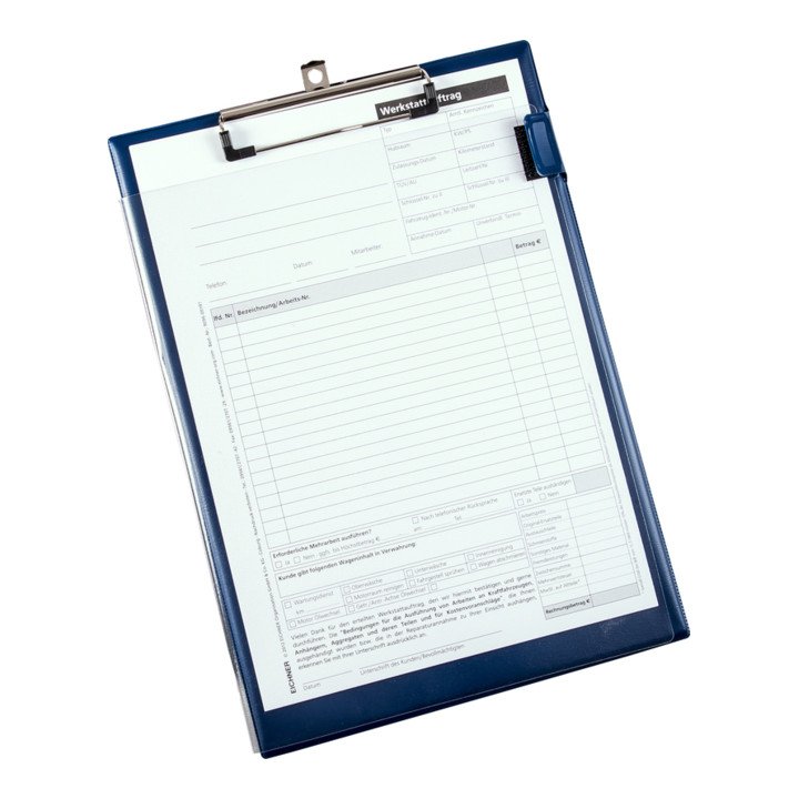 DIN A4 - solidna konstrukcja z zaciskiem blokowym - przezroczysta folia ochronna na całej powierzchni z przodu - mocowanie przezroczystej folii za pomocą rzepa z boku - opakowanie zbiorcze = 10 sztuk