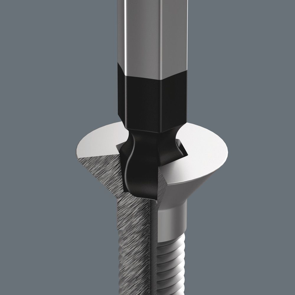 z 2-komponentową rękojeścią - ostrze ze stali molibdenowo-wanadowej nicromatt z końcówką Black Point i główką kulistą - (umożliwia wkręcanie pod kątem do 20°) - system prowadzenia rozmiaru - system wyszukiwania narzędzi Take it easy do śrub z gniazdem sześciokątnym