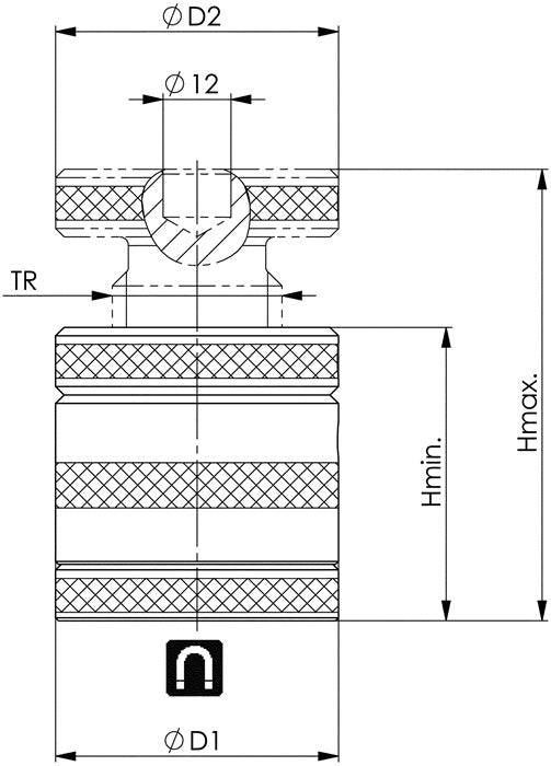 z płaskim wspornikiem i podstawą magnetyczną - wrzeciono: gwint trapezowy, samoblokujące, z ogranicznikiem krańcowym - stal hartowana, malowana - magnes stały może być używany do precyzyjnego pozycjonowania przedmiotu obrabianego w pozycji pionowej - specyfikacja Ø = bez podstawy magnetycznej