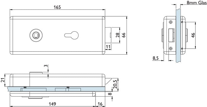 Zamek do drzwi szklanych HERMAT 6083 PZ - Genova stal nierdzewna matowa ( 3000253943 )