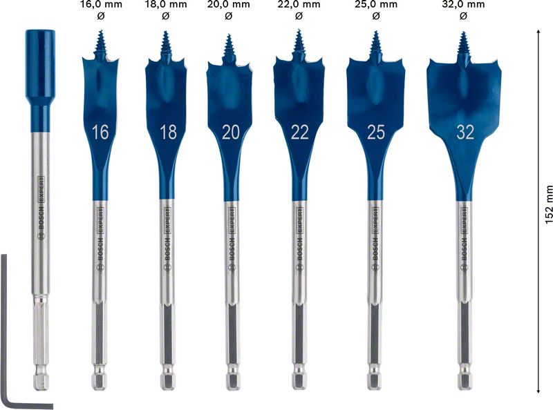 - 6x frezów płaskich Bosch EXPERT SelfCut Speed ( 16 / 18 / 20 / 22 / 25 / 32 mm )