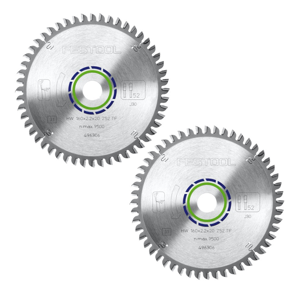 Zestaw specjalnych tarcz pilarskich Festool 2x HW 160 x 20 x 2,2 mm TF52 ( 2x 496306 ) 160 mm 52 zęby