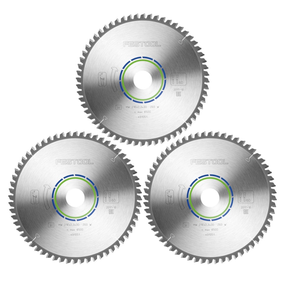 Zestaw specjalnych tarcz pilarskich Festool 3x HW 216 x 30 x 2,3 mm W60 ( 3x 491051 ) 216 mm 60 zębów
