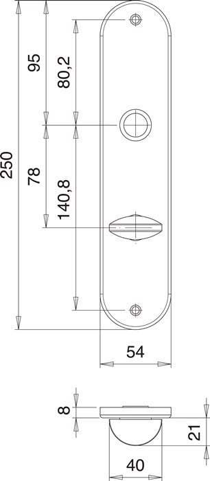 Stal nierdzewna - owalny - widoczne połączenie śrubowe - szerokość 54 mm - długość 250 mm