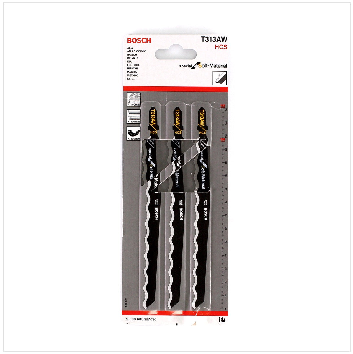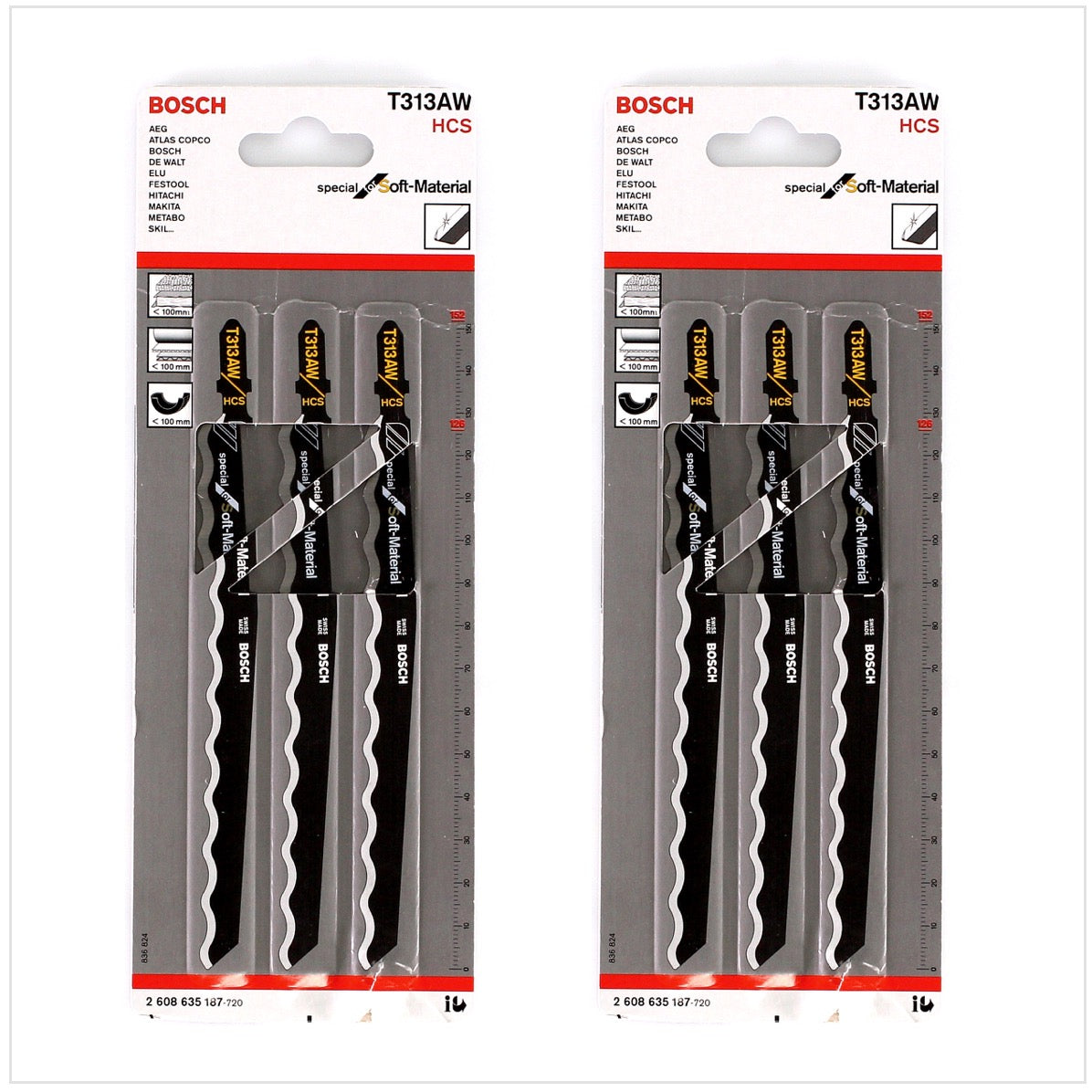 Bosch 12x Stichsägeblätter T 313 AW 126mm ( 2x 2608635187 ) zum Sägen in weichen Werkstoffen