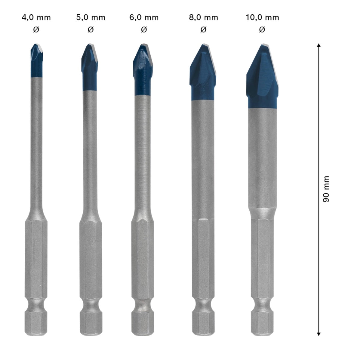- 5x Bosch EXPERT HEX-9 HardCeramic Bohrer 90 mm ( 4 / 5 / 6 / 8 / 10 mm )