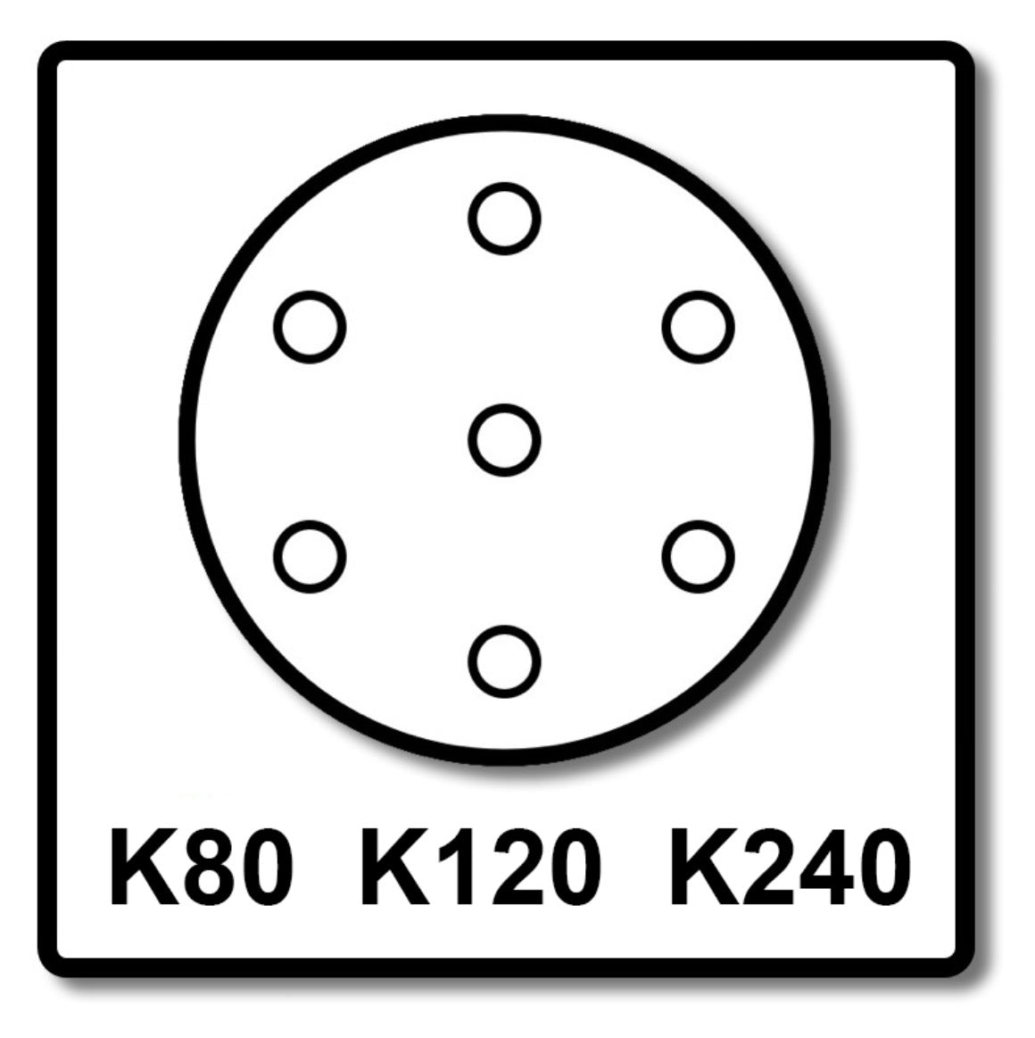 Bosch Exzenter Schleifpapier Set mit Klett gelocht K80 K120 K240 125 mm 25 Stück ( 2607019497 )