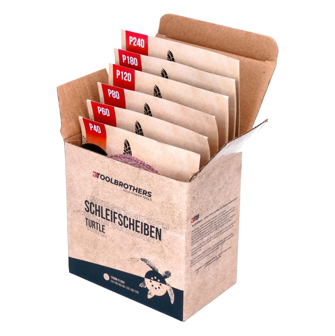 Bosch GEX 18V-125 Professional Akku Exzenterschleifer 18 V 125 mm Brushless + 1x Akku 5,0 Ah + 1x Toolbrothers TURTLE Schleifset + L-BOXX - ohne Ladegerät
