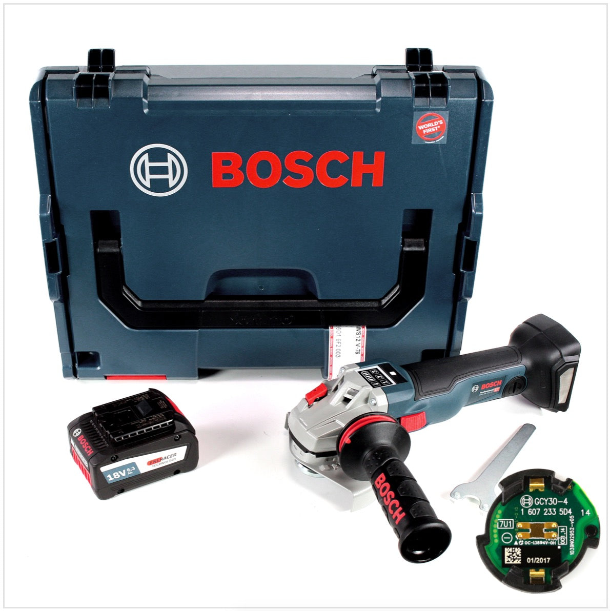 Bosch GWS 18 V-125 SC Akku Winkelschleifer 18V 125mm Brushless + GCY 30-4 Connectivity Modul + 1x Akku 6,3Ah + L-Boxx