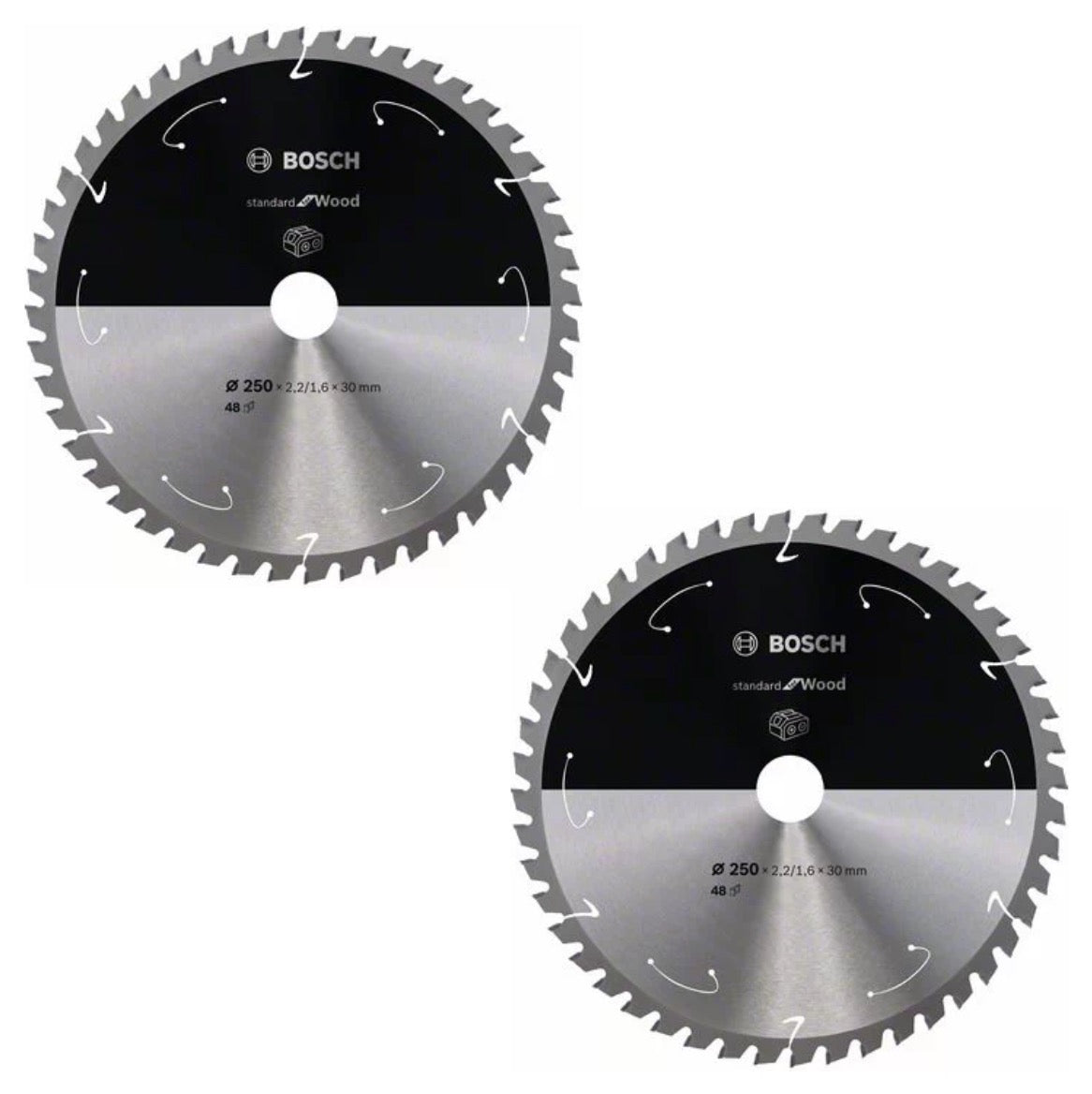 -2x Bosch Kreissägeblatt Standard for Wood 250 x 2,2 x 30 mm 48 Zähne ( 2608837728 )
