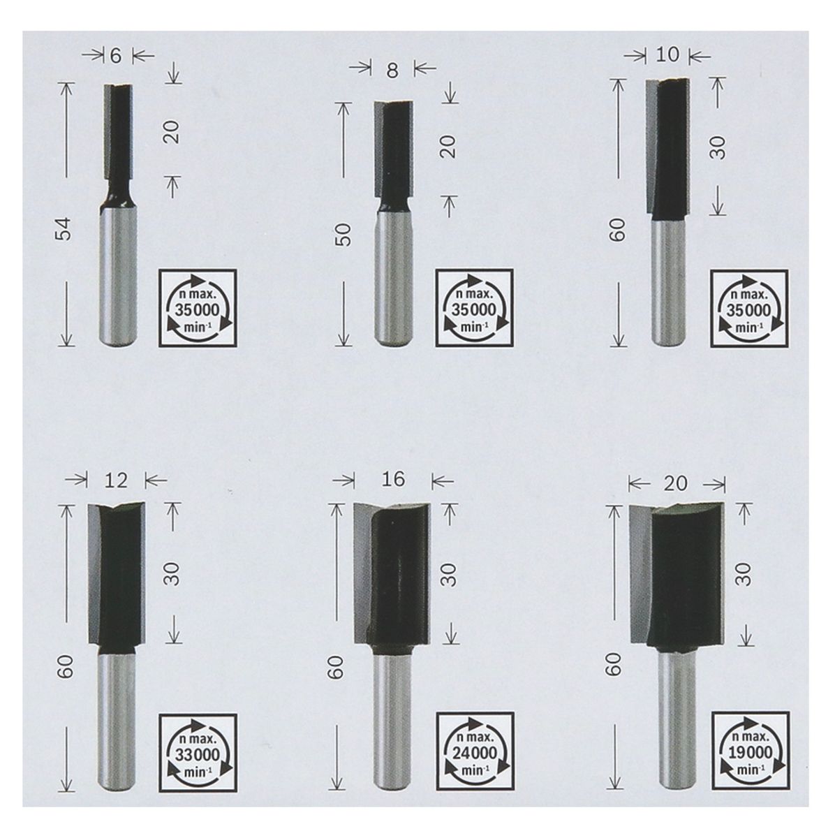 Bosch Nutfräser Set 6tlg. 6/8/10/12/16/20mm ( 2607017465 ) 6mm Schaft
