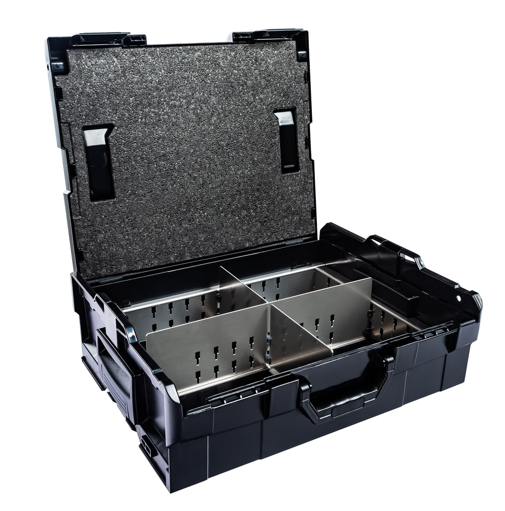Das Trennblechset 4F LB 136 ermöglicht Ihnen eine einfache und flexible Aufteilung der L-BOXX oder des obersten Fachs der LS-BOXX in bis zu 4 Fächer. Das hochwertige Trennblechset besteht aus robustem Aluminium und kann nachträglich und mühelos in Ihre Box eingesetzt werden. Dadurch schaffen Sie optimalen Stauraum für Ihre Werkzeuge, Zubehör oder andere Gegenstände.
