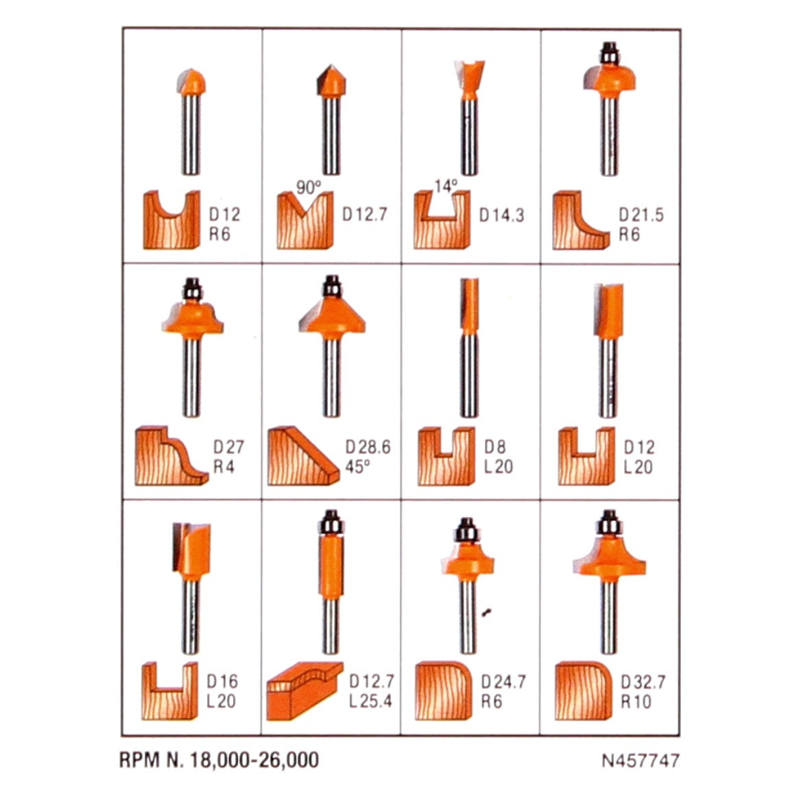 Dieses 12-teilige Fräser-Set von DeWalt eignet sich für Holz. Das Anti-Kickback-Design mit dem speziell geformten Korpus sorgt für ein rückschlagfreies Arbeiten in allen Holzmaterialien. Die hochwertigen Hartmetallschneiden mit winkelgenauestem Anschliff eignen sich für den härtesten Einsatz bei maximaler Lebensdauer. Die Kugellager sind austauschbar. Das Sortiment wird in einer praktischen Kunststoff-Klappbox geliefert.