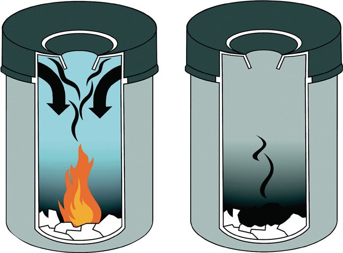 selbstlöschend · aus Metall · Korpus und Löschkopf mit kratzfester Epoxidharz-Beschichtung · der Flammenlöschkopf unterbricht die Sauerstoffzufuhr und erstickt die Flamme