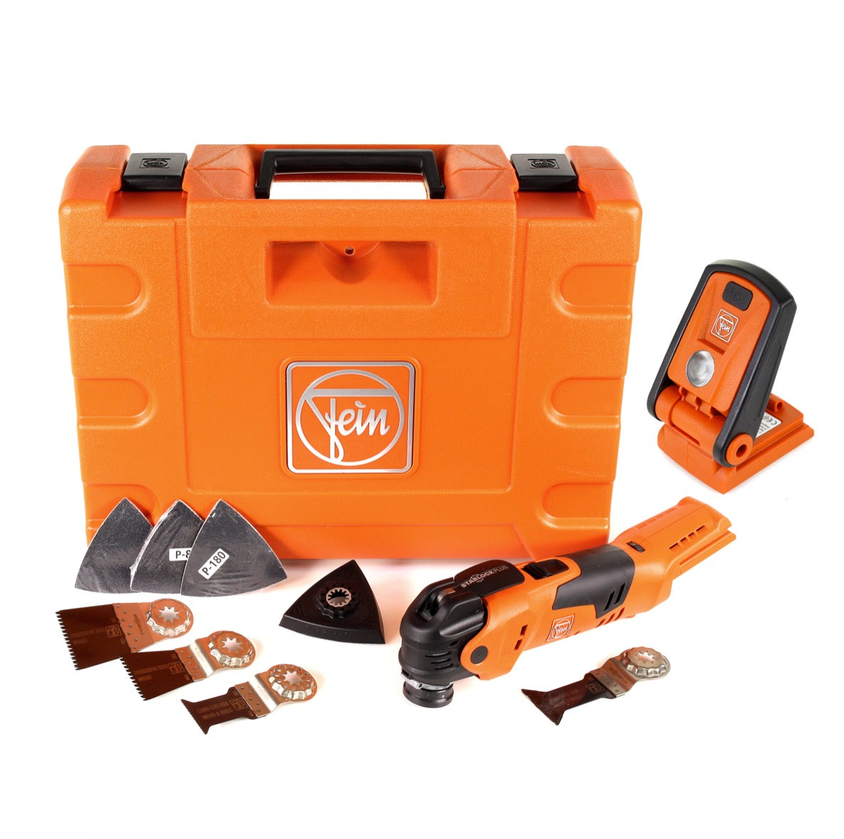 FEIN Akku-Oszillierer AFMT 12 QSL Edition 2018 MultiTalent 12 V Multifunktionswerkzeug Starlock Plus im Koffer + 3x Extra Sägeblatt + LED Lampe