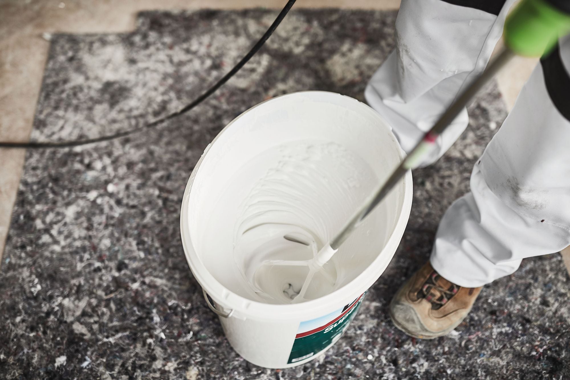 - Mischt bis hin zur letzten Ecke des Mischeimers