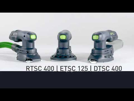 Für einzigartige Mobilität und Bewegungsfreiheit beim Arbeiten sorgen die neuen Akku-Kompaktschleifer ETSC 125, RTSC 400, DTSC 400. Der starke 18 V Bluetooth® Ergo-Akkupack mit 3,0 Ah garantiert Leistung wie aus der Steckdose. Und ist der Schlüssel für eine äußerst kompakte Bauweise mit ausbalancierte Gewichtsverteilung und perfekter Ergonomie bei nur 1,4 kg Gewicht. Die Eigenabsaugung in Kombination mit dem Longlife-Staubfangbeutel ermöglicht flexibles Handling der Maschine – ermüdungsarm auch über Kopf, senkrecht oder an schwer erreichbaren Stellen. Der Bluetooth® Akkupack sorgt für unkompliziertes Arbeiten in Kombination mit einem Bluetooth®-fähigen Festool Absaugmobil und sorgt dafür, dass der Sauger im AUTO-Modus beim Starten des Akkuschleifers automatisch startet. Für unbegrenzte Laufzeit lässt sich der Akkupack gegen den plug it-Netzadapter tauschen – ideal für stationäre Einsätze und ebenfalls in Kombination mit einem Festool Absaugmobil.