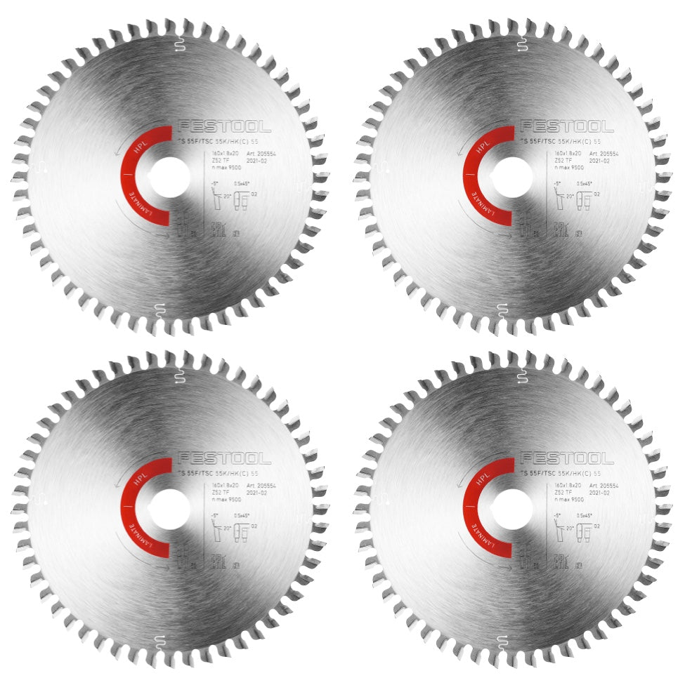 Festool Kreissägeblatt 4x Laminate/HPL HW 160 x 1,8 x 20 TF52 ( 4x 205554 ) für Tauchsägen TS 55 F, TSC 55 K & Handkreissägen HK 55, HKC 55