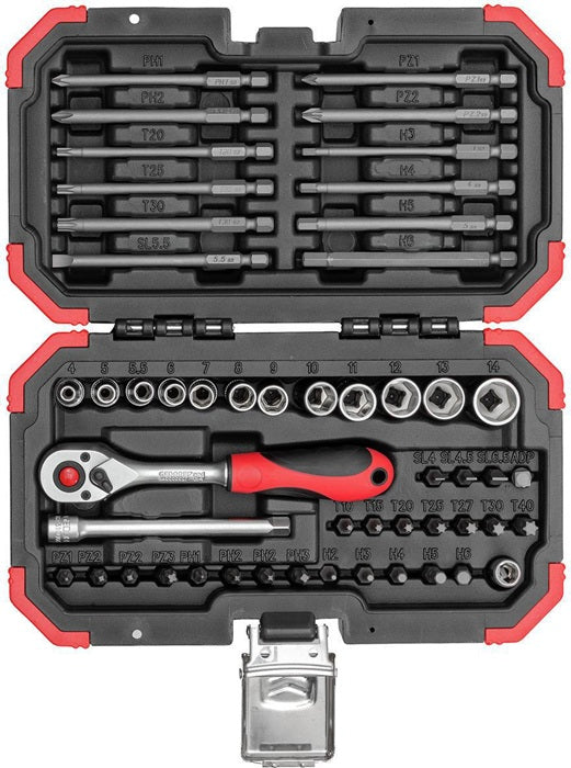- 1x GEDORE RED Bit-/Steckschlüsselsortiment 51-teilig 1/4 ″