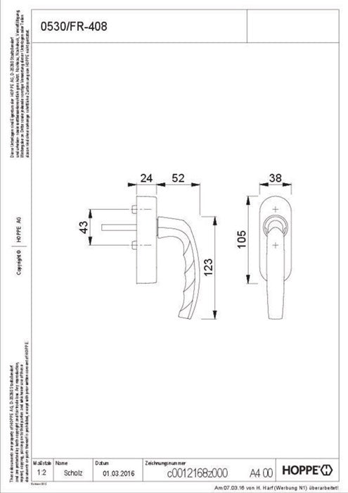 HOPPE Fenstergriff Atlanta 0530/FR-408 Aluminium F9 / stahlfarben ( 8000347453 )