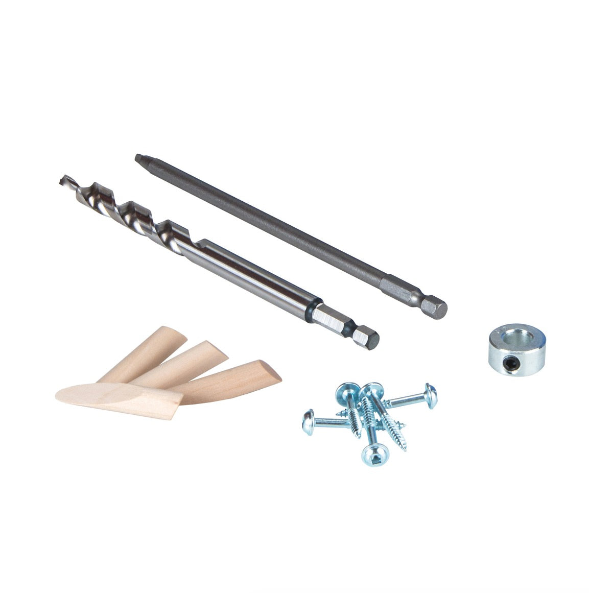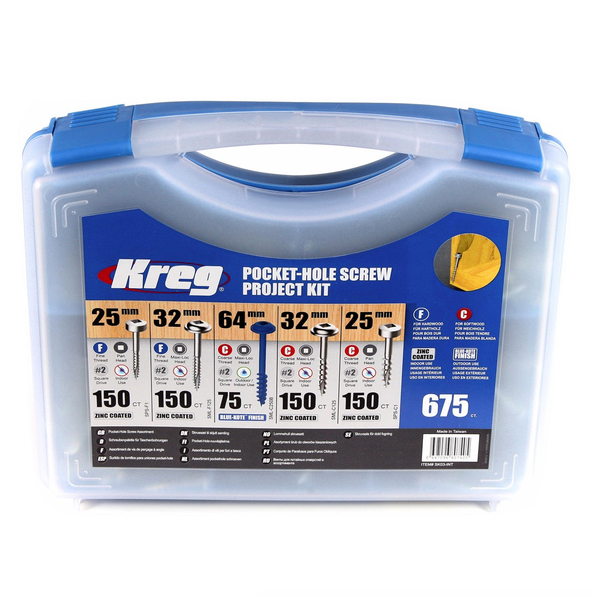 Die Kreg Bohrschablone K4 ist die perfekte Wahl für Heimwerker und erleichtert den Einstieg in Holzverbindungslösungen mit Taschenlöchern. Die 3 Bohrerführungen verhelfen Ihnen zu perfekt positionierten Taschenlöchern für eine Vielzahl von Materialien, Breiten und in Stärken von 1/2" bis 11/2" (12-38mm) in Stufen von 1/8" (3mm). Jede Kreg Bohrerführung besteht aus gehärtetem Stahl mit lebenslanger Garantie. Der Kern umhüllt den Bohrer und unterstützt das Werkstück während der gesamten Bohrung, was zu einer hohen Bohrgenauigkeit, verringertem Abriss des Materials und zu einem sauberen Taschenloch führt, das sofort zur Weiterverarbeitung bereit ist. Die großzügig gehaltene Nische erlaubt eine sichere Verbindung der Bohrschablone mit Ihrer Werkbank. Die Kreg Bohrschablone K4 verfügt über eine auf der Rückseite montierte Hebelklemme. Deren bewährtes Konzept bietet eine unfassbare Stabilität und hält das Werkstück fest im Griff. Die Anpassung erfolgt ganz einfach über die Lockerung der Sicherungsmutter und anschließendem Drehen auf die richtige Einstellung. Das blaue Gehäuse von jeder Kreg Bohrschablone K4 wird aus einem kräftigen, glasverstärken Nylon hergestellt. Dieser einzigartige Verbundstoff bietet die nötige Widerstandsfähigkeit und Flexibilität, ohne dass Stärke oder Haltbarkeit eingebüßt werden. Im Gegensatz zu herkömmlichen Bohrschablonen mit einem engeren Anstellwinkel bietet diese Bohrschablone einen optimalen Bohrwinkel, der zur Erhöhung der Antriebseffizienz bei zugleich minimal großen Taschenlöchern gewählt wurde. Dadurch können kompakte Taschenlöcher in Größen unter 11/2" (38mm) erzielt werden. Zudem besitzt sie für jede der Bohrerführungen eine Ausgangsöffnung für Holzspäne. Diese wurden dafür entwickelt, um den Bohrer frei von überschüssigen Holzspänen zu halten, wodurch der Widerstand beim Bohren minimiert und die Lebensdauer des Bohrers erhöht wird. So gelingt schon beim ersten Ansetzen ein perfektes Taschenloch. Das Kreg-Blechschrauben-Starterset bietet ein passgenaues Sortiment an Kreg-Schrauben für Kreg-Holzverbindungsprojekte. Das Blechschrauben-Starterset enthält 675 Kreg-Schrauben in 5 gängigen Größen, sodass es die perfekte Wahl ist, wenn Sie Ihre erste Kreg-Schablone kaufen und gerade erst mit dem Bauen beginnen oder auf der Suche nach einem Sortiment sind, das perfekt für Haushalt-Reparaturen geeignet ist. Dieses Set enthält fünf der beliebtesten Kreg-Blechschrauben, die in einer langlebigen, leicht zu tragenden Box aufbewahrt sind. Dies ist ein großartiges Starter-Set für jeden Anfänger in der Kreg-Holzverbindung. Alle Schrauben sind in einer haltbaren, unterteilten Box aufbewahrt. Mit dem Kreg-Jig-System ist die Herstellung hochwertiger Möbel und Holzarbeiten für jeden Handwerker einfach und bequem zu verwirklichen.