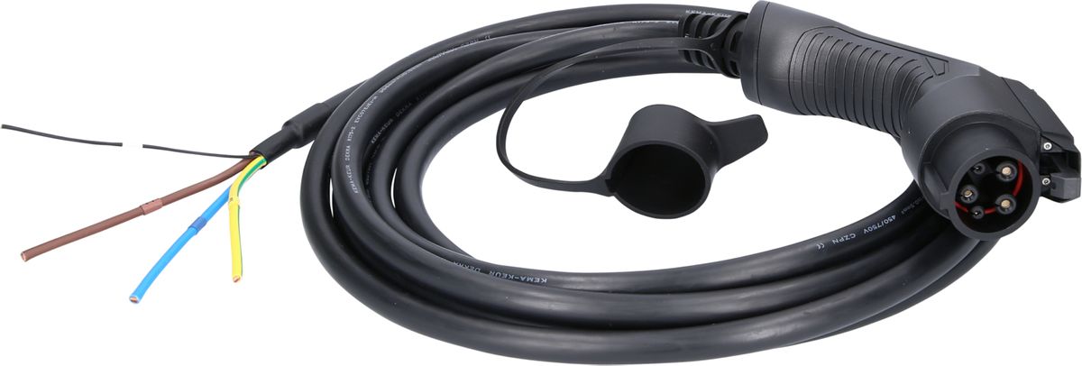 - Stecker ladestationsseitig: Ende offen für Anschluss an Wallbox