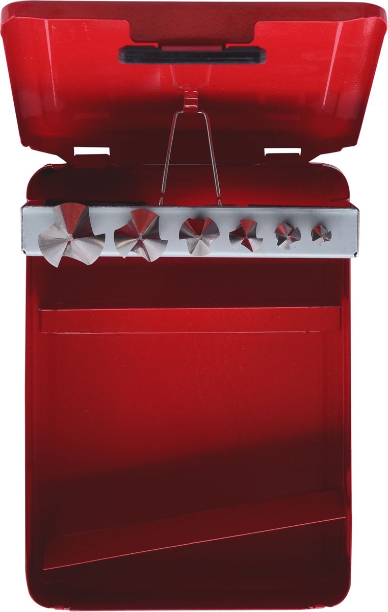 HSS Co 5 Kegel-Entgratsenker-Satz, Stahlblechkassette 6-tlg · HSS Co 5 Kegel- und Entgratsenker-Satz 90° in Stahlblechkassette