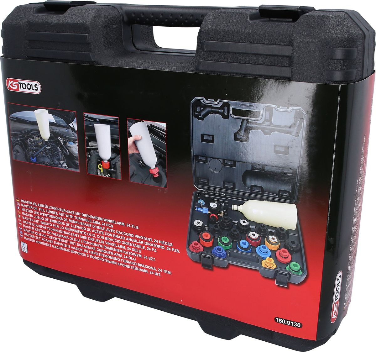 KS TOOLS MASTER Öl-Einfülltrichter-Satz mit drehbarem Winkelarm, 24-tlg ( 150.9130 )