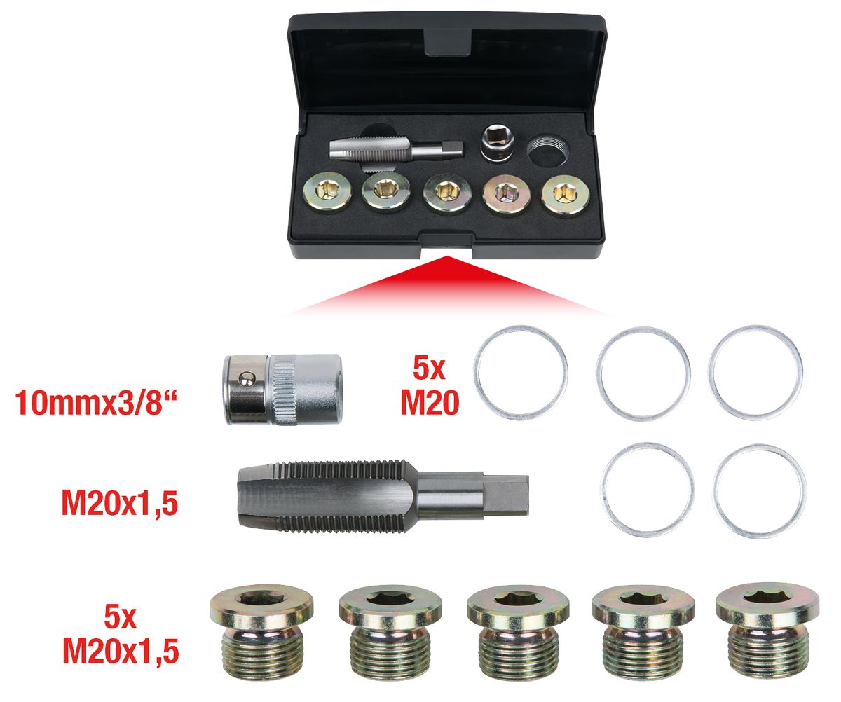 KS TOOLS Ölablassschrauben-Gewindereparatur-Satz, 12-tlg M20 x 1,5 ( 150.4940 )