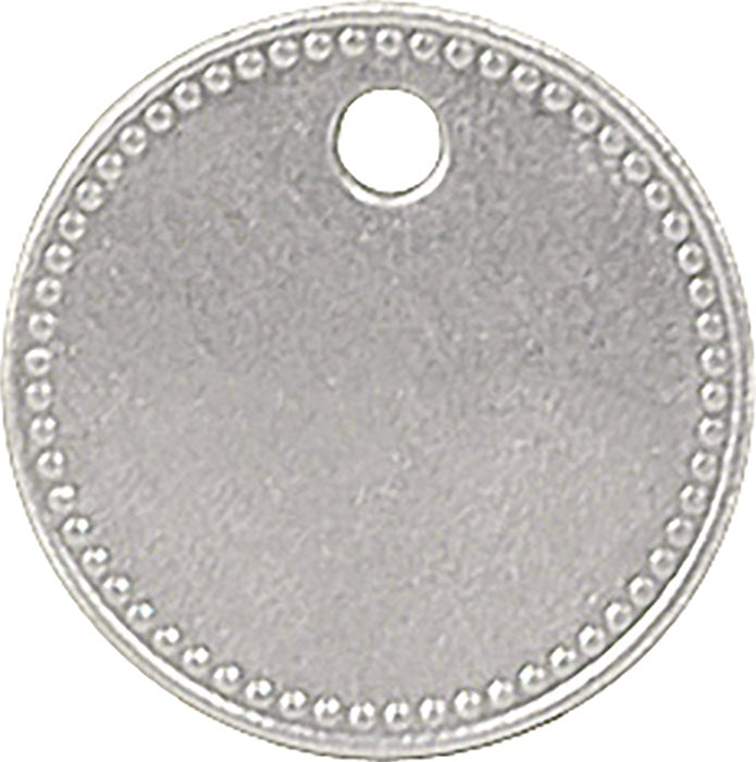 zum Selbsteinschlagen von Zahlen und Buchstaben (ohne Beschriftung) · gelocht · rund · Ø 27 mm · mit Perlrandprägung und Loch