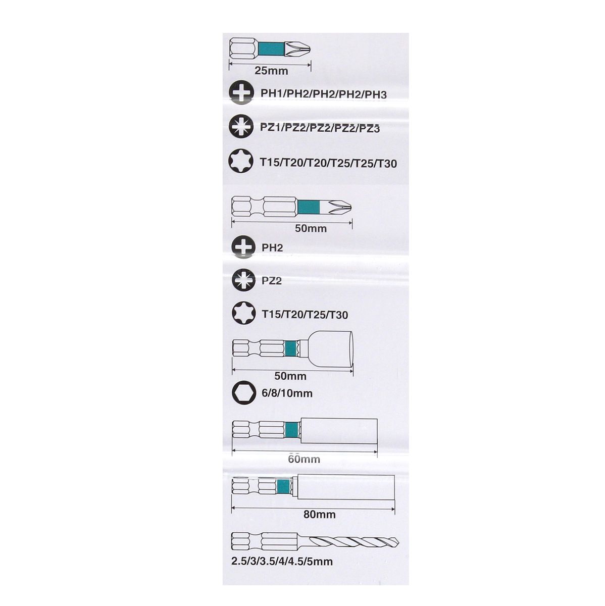 Das Makita Bit und Bohrer Set Impact Black besteht aus hochlegiertem S2 Stahl und besitzt dank der zusätzlichen Hitzebehandlung eine höhere Lebensdauer und Festigkeit als Standard Bits und Bohrer. Dank der mit höchster Präzision gefertigten Spitzen ist ein optimaler Halt am Schraubenkopf gegeben. Durch die im Set enthaltenen Bits und Bohrer sind die meisten Anwendungen abgedeckt. Die 1/4" Aufnahme gewährleistet eine Kompatibilität zu den meisten Bohrschraubern. Makita ist einer der führenden Hersteller im Bereich der Elektrowerkzeuge und steht für Produkte auf höchsten Qualitätsniveau.