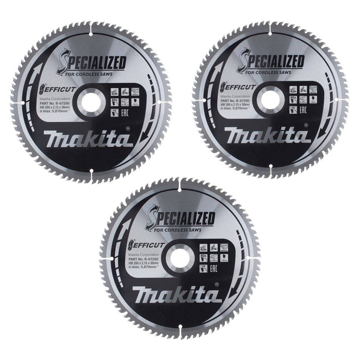 Makita CMSXF26080G SPECIALIZED EFFICUT Sägeblatt 260 x 30 x 1,65 mm 3 Stk. ( 3x B-67290 ) 80 Zähne für Holz
