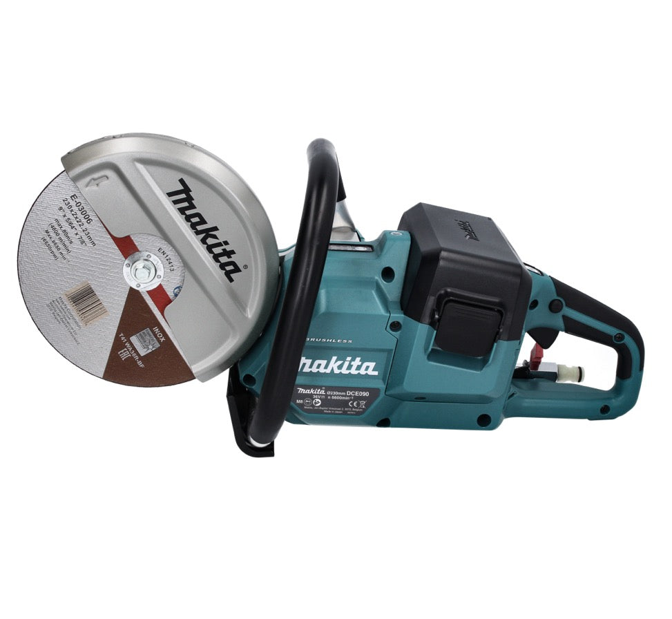 Der DCE 090 Akku Trennschleifer von Makita ist für schwere Schnitt Anwendungen entwickelt worden. Betrieben wird der Trennschleifer mit zwei zusammen geschalteten 18 Volt Akkus ( 36 V ), die für eine enorme Kraft und eine maximale Schnittleistung von 88 mm sorgen. Er wurde Speziell für den Einsatz mit Diamantscheiben entwickelt. Die Schlauchführung zur Wasserkühlung verläuft innerhalb des Gehäuses und ist somit gegen Beschädigungen von außen geschützt. Der bürstenlose Motor sorgt für mehr Ausdauer, längere Lebensdauer und eine kompaktere Bauweise, die auch zur schonung des Akkus beiträgt. Eine eingebaute LED sorgt auch bei schlechten Lichtverhältnissen für optimale Sicht. Die Active Feedback sensing Technology, kurz AFT, zum Schutz des Anwenders bei blockierendem Werkzeug. Die Xtreme Protection Technology ( XPT ) bietet optimalen Schutz gegen Staub und Spritzwasser und schützt somit die Elektronik auch unter harten Bedingungen. Der Sanftanlauf verhindert eine ruckartige Bewegung beim starten der Maschine und verhindert somit ein außer Kontrolle raten der Maschine und dementsprechend mögliche Schnittverletzungen. Makita ist ein führender Hersteller von Elektrowerkzeugen, eine lange Tradition und höchste Qualitätsansprüche zeichnen das Unternehmen aus.
